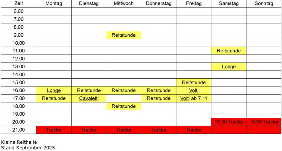In der großen Reithalle ist Longieren und Laufenlassen grundsätzlich nicht erlaubt!